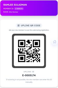 Masukkan ID saya E-0005174 sebagai UPLINE atau imbas Kod QR yang saya sediakan.